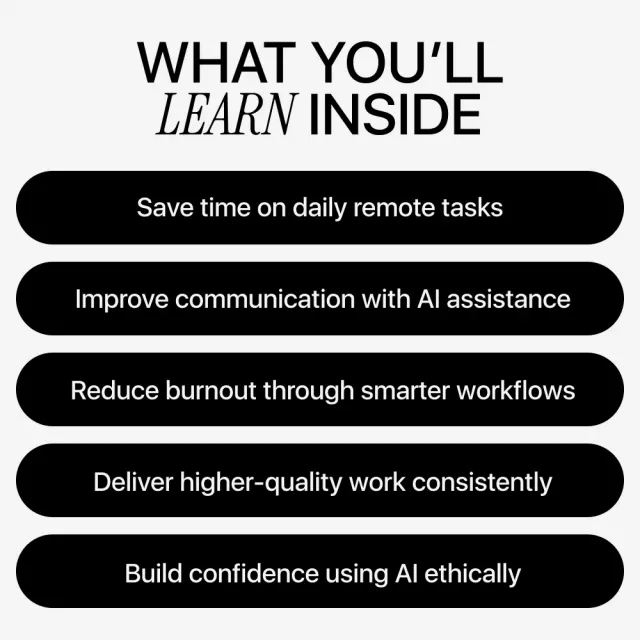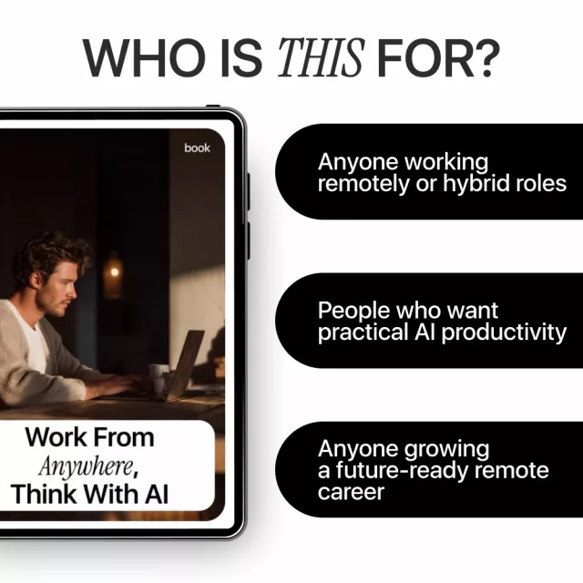 Unlike generic AI guides, this ebook focuses specifically on remote work realities. It’s practical, ethical, and human-centered—showing you how AI supports your work instead of replacing it.
