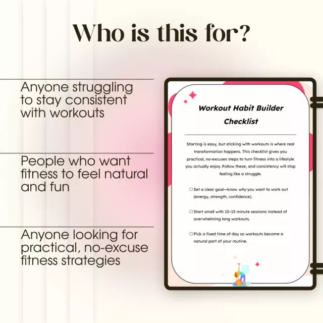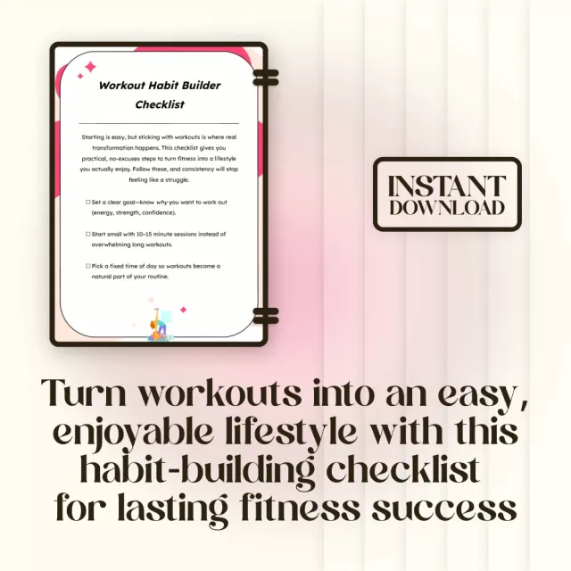 Starting a fitness journey is exciting, but staying consistent is where true transformation happens. The Workout Habit Builder Checklist is a simple yet powerful digital tool that shows you exactly how to build a workout habit that sticks. Designed as a practical, no-excuses resource, this checklist makes it easier to stay motivated, remove obstacles, and enjoy your workouts every day. Whether you’re just starting or have tried before and struggled with consistency, this guide helps you turn exercise into a lasting lifestyle you’ll actually enjoy.