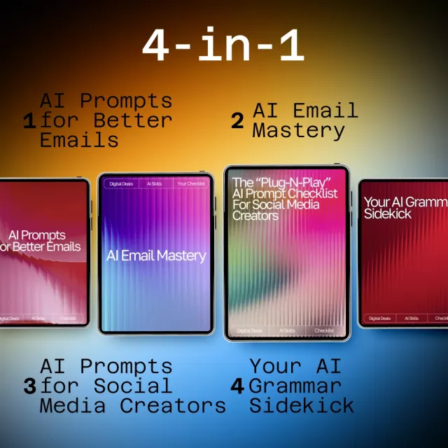 This bundle has been a lifesaver for me! I used to spend hours crafting emails and social posts, but now, with the AI prompts and grammar sidekick, my messages are clear and confident in minutes. Plus, it's so easy to use - just copy, paste, customize 🙌