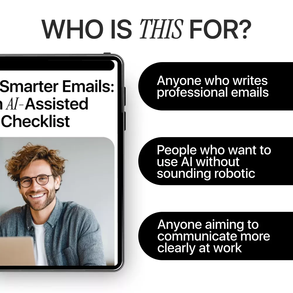 This is a digital download you can use again and again. If you want AI-assisted emails that still feel unmistakably human, Write Smarter Emails: An AI-Assisted Checklist is your go-to tool. Download it now and upgrade the way you communicate—one email at a time.