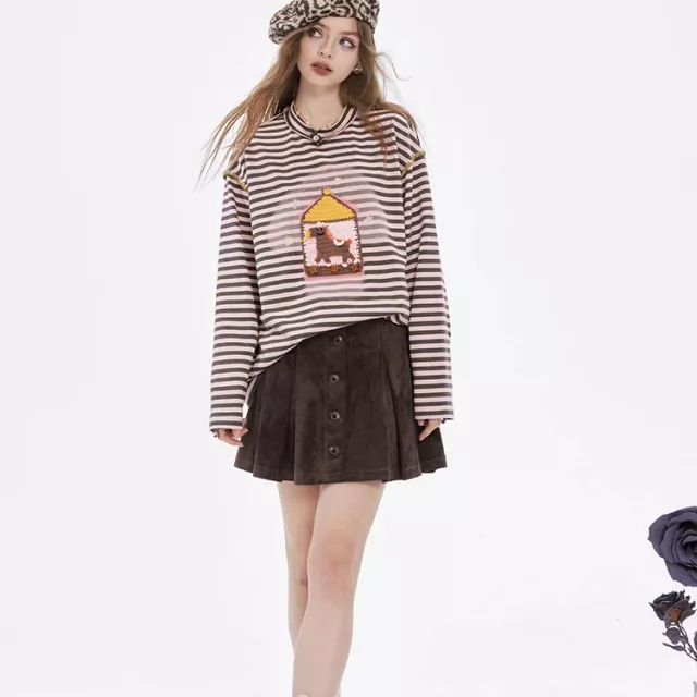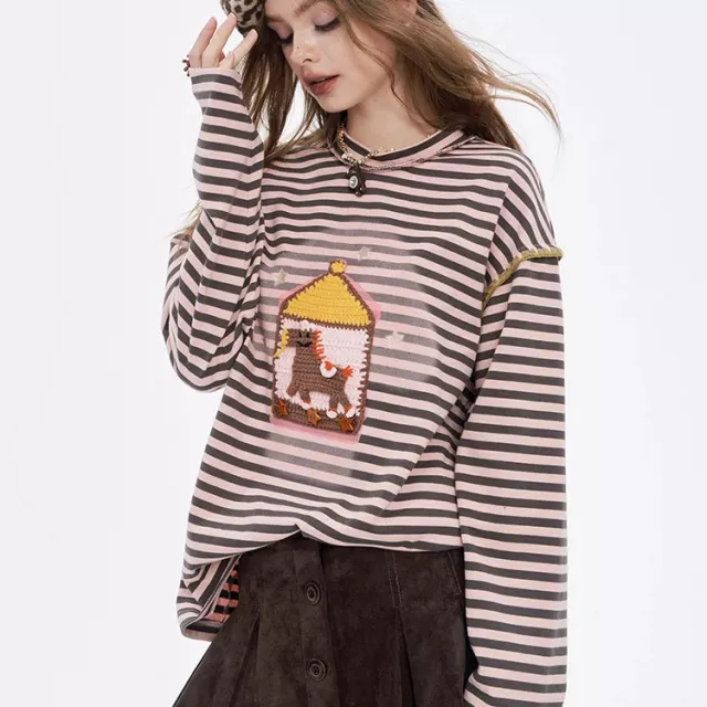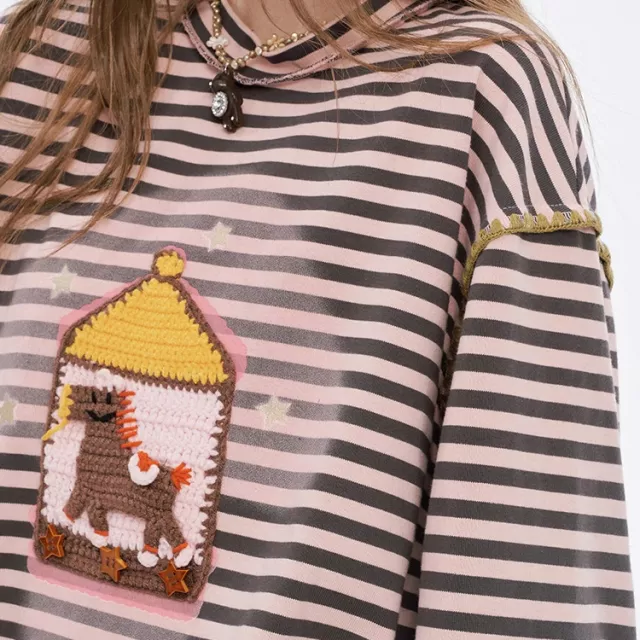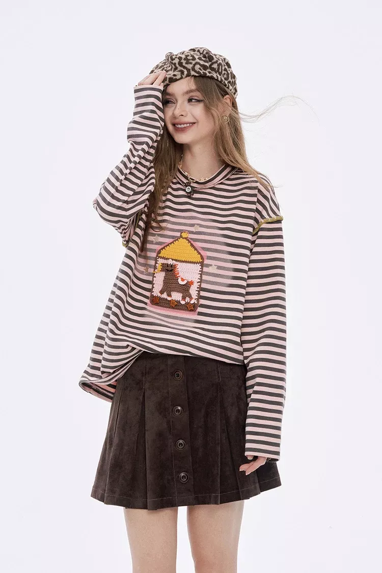 • Preppy stripe pattern with fun cartoon graphics adds a playful touch to your outfit