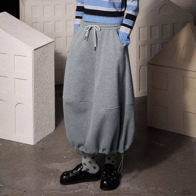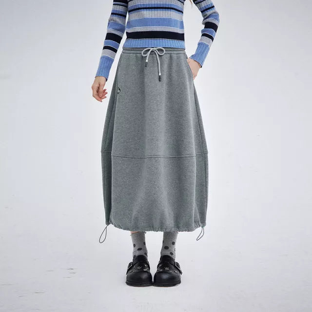 This slim-fit trumpet skirt follows your natural waistline and gently flares at the hem for a flattering mermaid shape. The elastic waistband with an adjustable drawstring hugs your waist comfortably without feeling tight. Made from a soft terry fabric blend of cotton and polyester, it offers just the right amount of warmth and a slight stretch for easy movement.