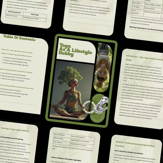 Unlike rigid workout plans or advanced yoga manuals, Yoga as a Lifestyle Hobby focuses on mindset, flexibility, and enjoyment. It shows you how to build yoga routines as a hobby that adapt to real life, changing energy levels, and evolving goals—making it easier to stay consistent long term.