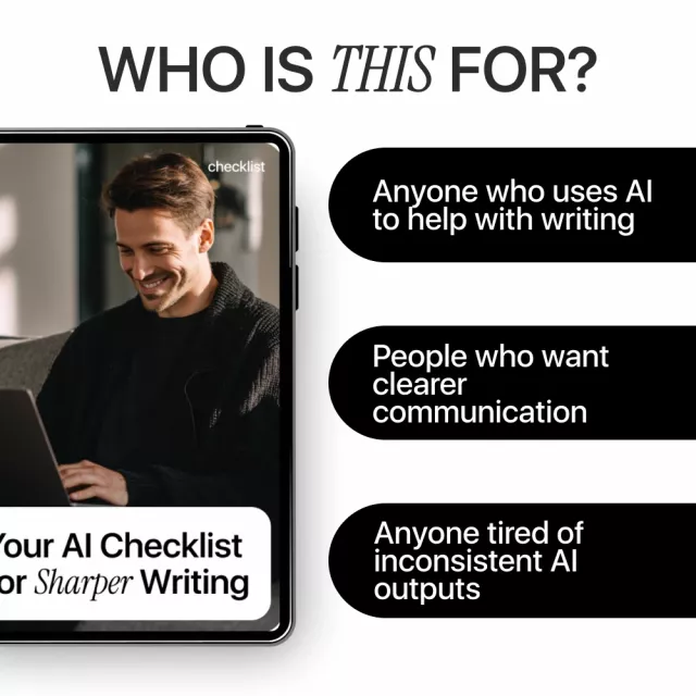 Unlike generic AI writing tips, Your AI Checklist for Sharper Writing is action-based and practical. You’re not guessing what to ask—each step tells you exactly how to prompt AI for clarity, focus, and flow. It works as a repeatable system you can use on any piece of writing.