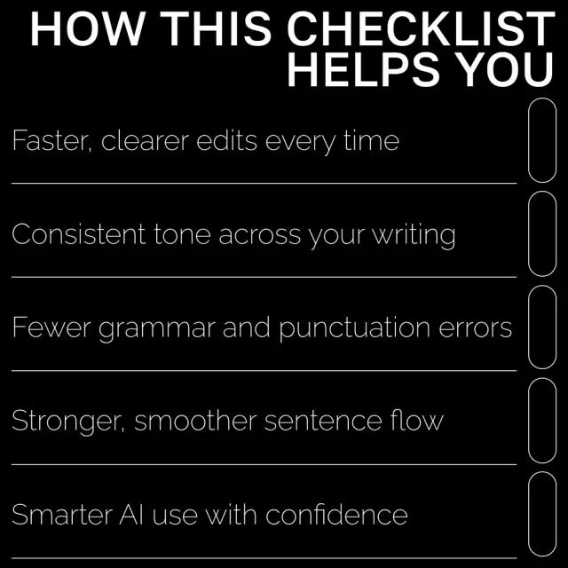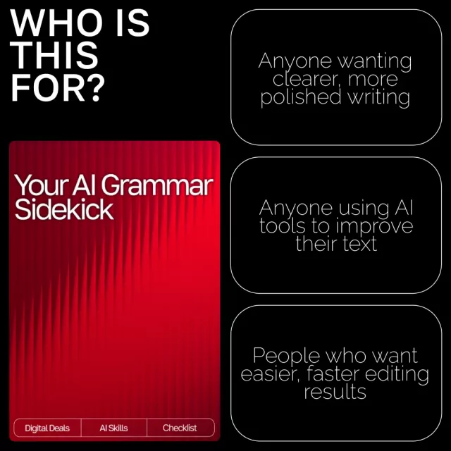 Meet Your AI Grammar Sidekick—the go-to digital guide designed to help writers of all levels elevate their grammar, clarity, and writing confidence using AI tools the *right* way. Whether you’re polishing social media captions, refining business emails, or editing a full manuscript, this resource shows you exactly how to work with AI for cleaner, stronger, and more natural writing results. Easy to follow, instantly actionable, and crafted for busy creatives, this guide takes the guesswork out of AI-assisted editing.