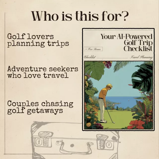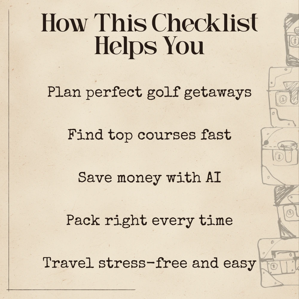 Make your next golf adventure seamless from tee-off to touchdown. Download Your AI-Powered Golf Trip Checklist today and start using ai for planning a golf trip to create a smarter, smoother, and more unforgettable golf experience.