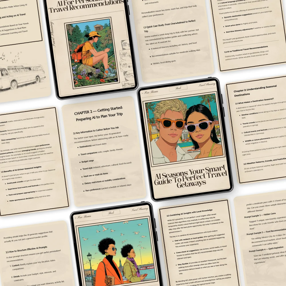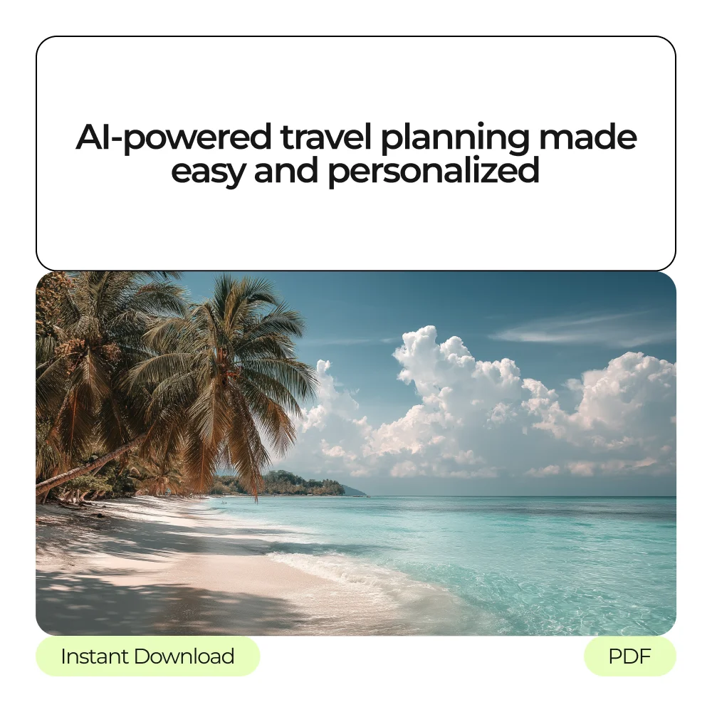 Take the stress out of planning your next adventure with Your AI-Powered Travel Concierge. This 3-in-1 bundle of digital downloads is designed to help travelers of all levels make smarter decisions, find hidden gems, and create unforgettable experiences. Whether you’re planning a weekend getaway or a multi-city journey, our guides, eBooks, and checklists bring the power of technology right to your fingertips. Using ai for personalized travel recommendations, you’ll get insights tailored to your interests, schedule, and budget so every trip feels effortless and uniquely yours.