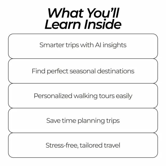 This bundle is perfect for travelers seeking a smarter, more personalized approach to exploring the world. It’s ideal for solo adventurers, families, couples, or anyone curious about leveraging AI to enhance their trips. If you want stress-free planning, insider knowledge, and tailored recommendations, this bundle is made for you.