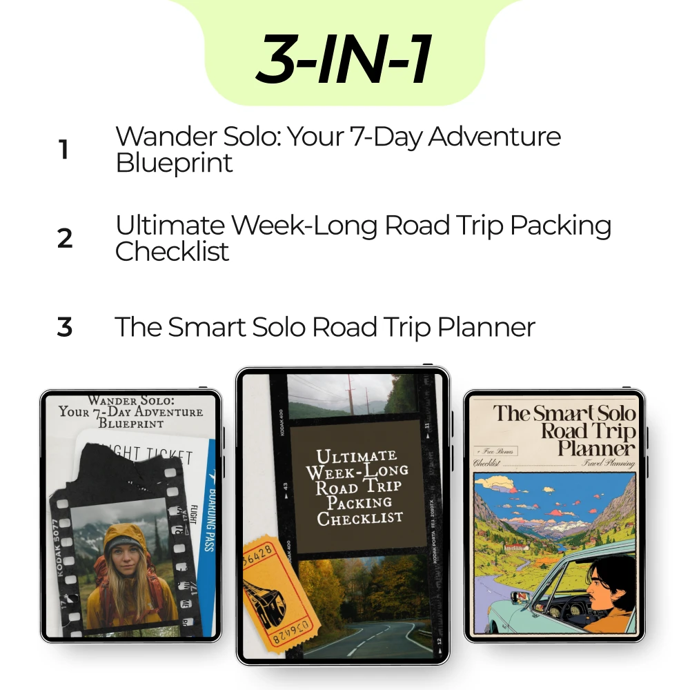 Ready to start your solo adventure? Download Your Bundle for a Perfect One-Week Solo Adventure today and take the first step toward your dream road trip!