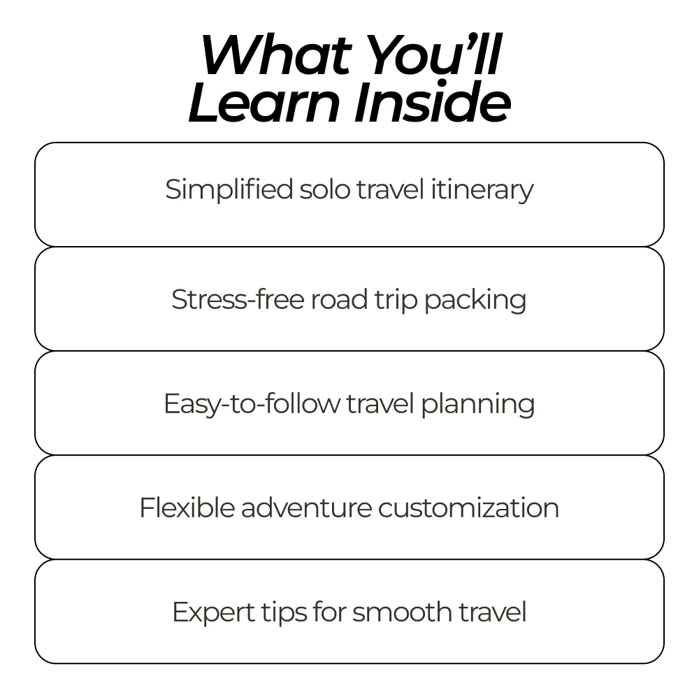 i can't imagine going on another solo road trip without this bundle! it's got everything you need for a successful journey from start to finish. plus, being able to access these downloadable guides anytime anywhere made things so much more convenient