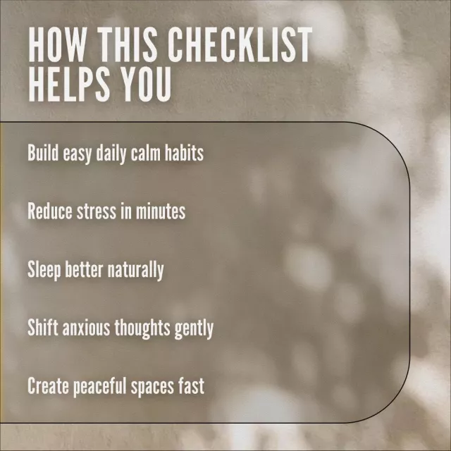 This is more than just a checklist—it’s a mindful companion for anyone seeking a calmer lifestyle without overwhelm. Easy to follow and thoughtfully organized, it helps you take small but meaningful actions toward inner peace, one checkmark at a time.