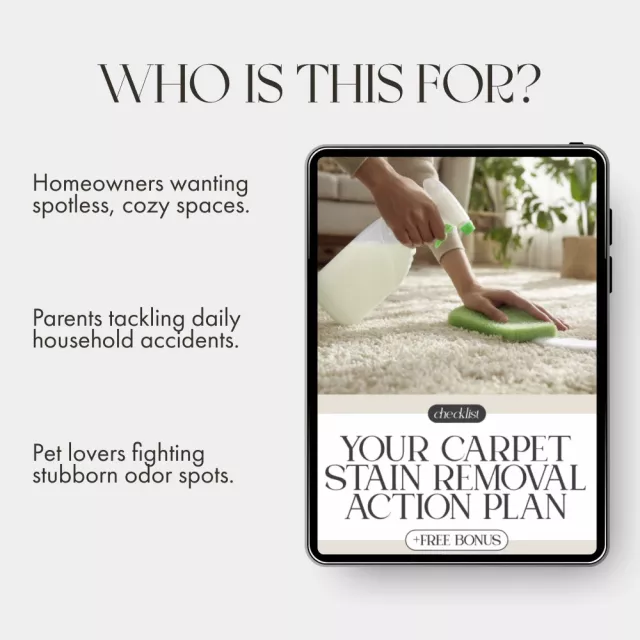 This checklist is perfect for anyone who wants to learn how to remove carpet stains like a pro—homeowners, apartment dwellers, pet parents, and anyone who loves a clean, fresh home. It’s designed for people who value practical, efficient, and modern cleaning methods that actually work.