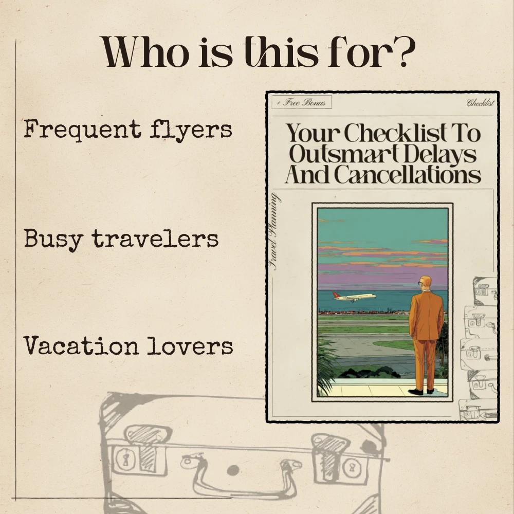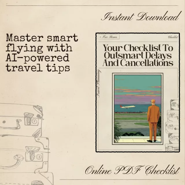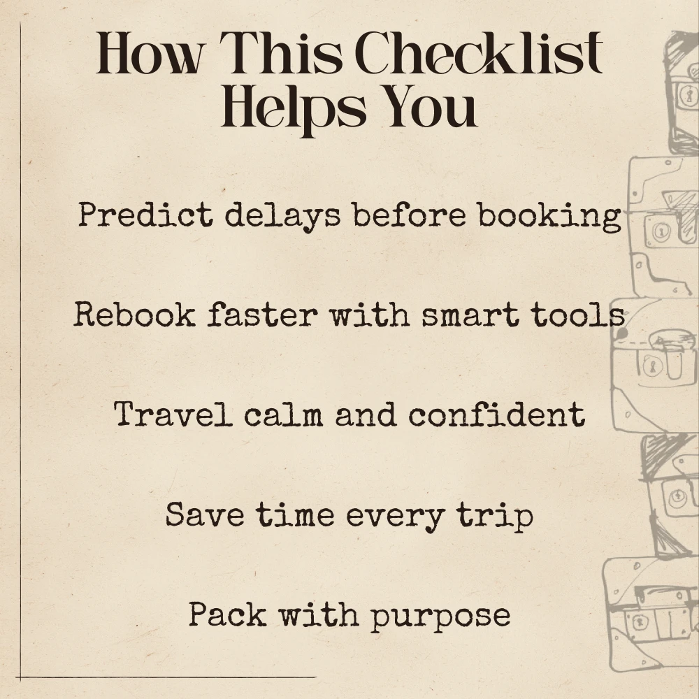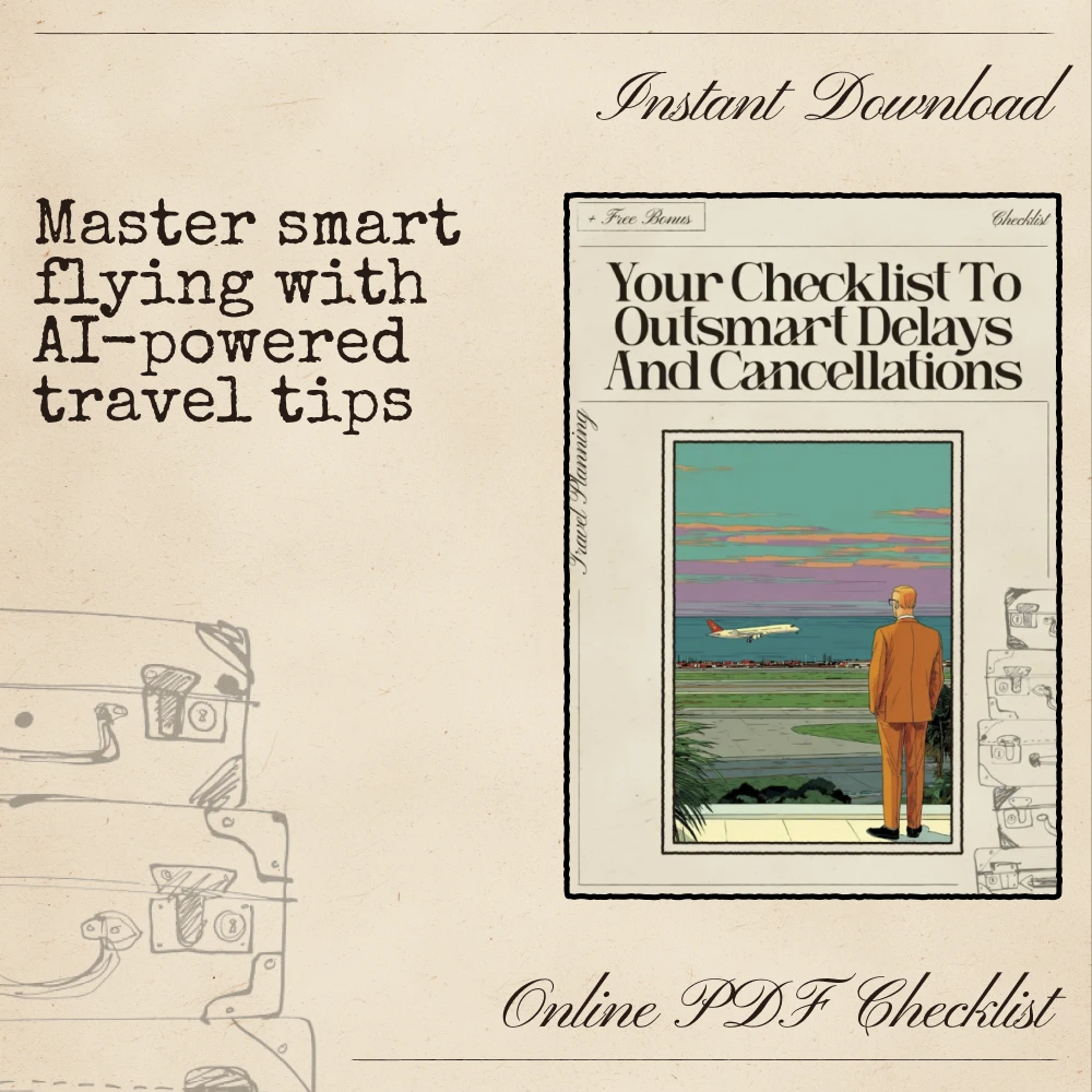 Don’t wait for delays to ruin your next trip. Download Your Checklist to Outsmart Delays and Cancellations today and start using ai to avoid flight delays and cancellations to travel confidently, efficiently, and on time.
