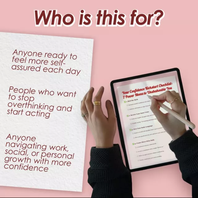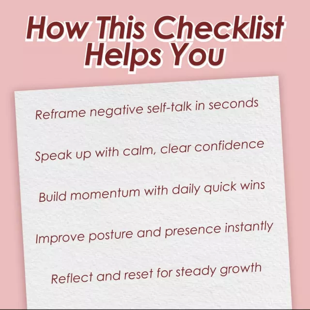 Need a boost in self-belief? Whether you’re prepping for a big presentation, navigating social situations, or just tired of second-guessing yourself, this instantly downloadable checklist is your go-to confidence companion. Your Confidence Kickstart Checklist: 7 Power Moves to Unshakeable You is a quick, empowering resource designed to help you feel more self confident—fast. With seven powerful, actionable steps, you’ll start noticing shifts in how you show up at work, in social settings, and in your own self-talk. No fluff. Just practical tools you can use immediately.