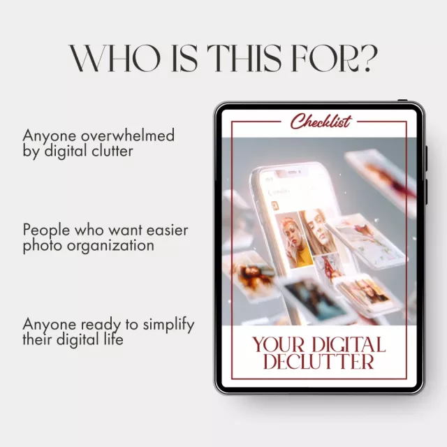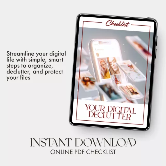 Is your phone or computer bursting with thousands of scattered photos and messy folders? Your Digital Declutter Checklist is the ultimate step-by-step guide to help you take back control of your digital life. Designed for anyone who wants to learn how to organize digital photos and files with clarity and confidence, this downloadable checklist simplifies what feels overwhelming into clear, manageable actions. Whether you’re sorting through years of family pictures, work documents, or creative projects, this guide makes it easy to create a tidy, stress-free digital space.