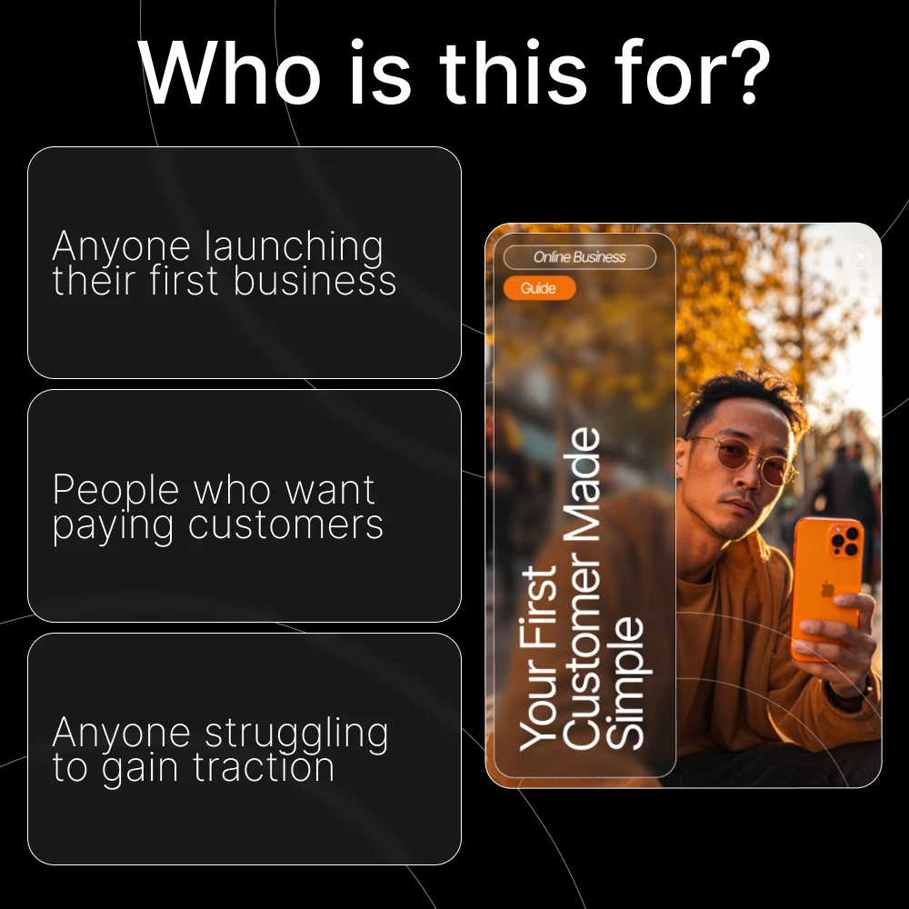 Unlike other generic guides, “Your First Customer Made Simple” is focused entirely on your very first sale and provides practical, implementable strategies. It’s not just theory—it includes case studies, AI prompts, and checklists that guide you from zero to your first customer, while also giving you the tools to scale beyond.