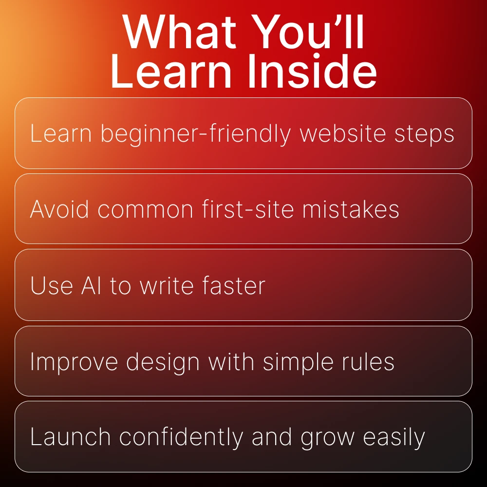 Unlike generic tutorials, this guide is structured to eliminate overwhelm. It blends step-by-step simplicity with real examples, beginner-friendly advice, and practical tools you can use instantly. You’ll also find AI tips that make building and writing your site faster than ever. Everything is written in plain language, making the process feel easy—even fun.