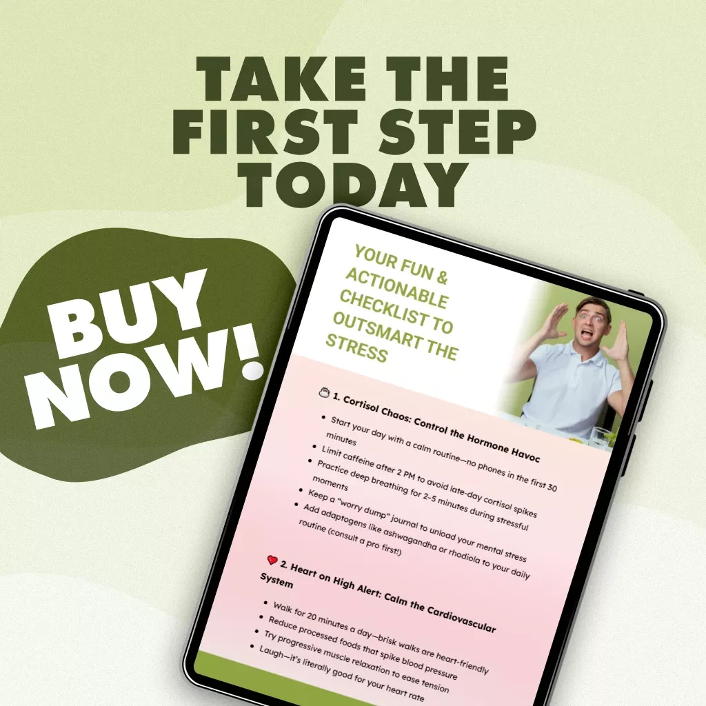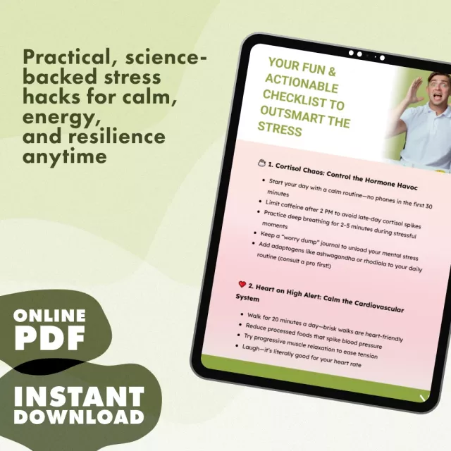 Don’t let stress control your body and mind any longer. Download Your Fun & Actionable Checklist to Outsmart the Stress today and take the first step toward calmer days, better focus, and healthier living.