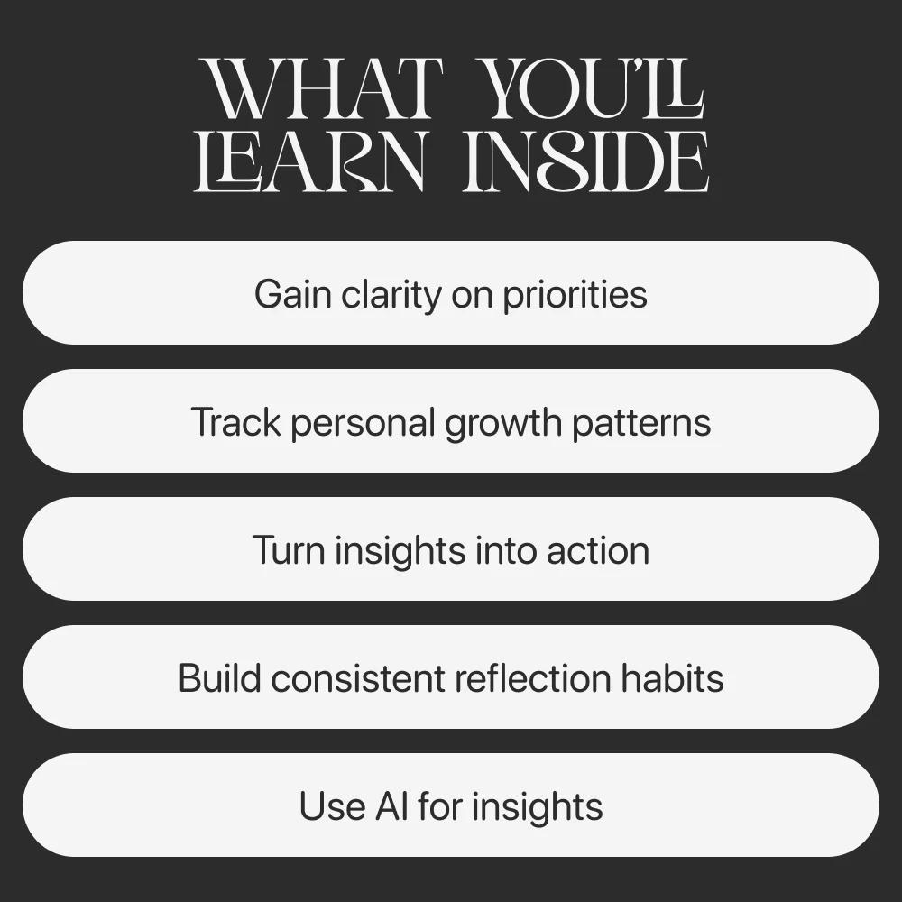 • Chapter 7: Reflection as a Lifestyle – maintain consistency and build long-term self-awareness