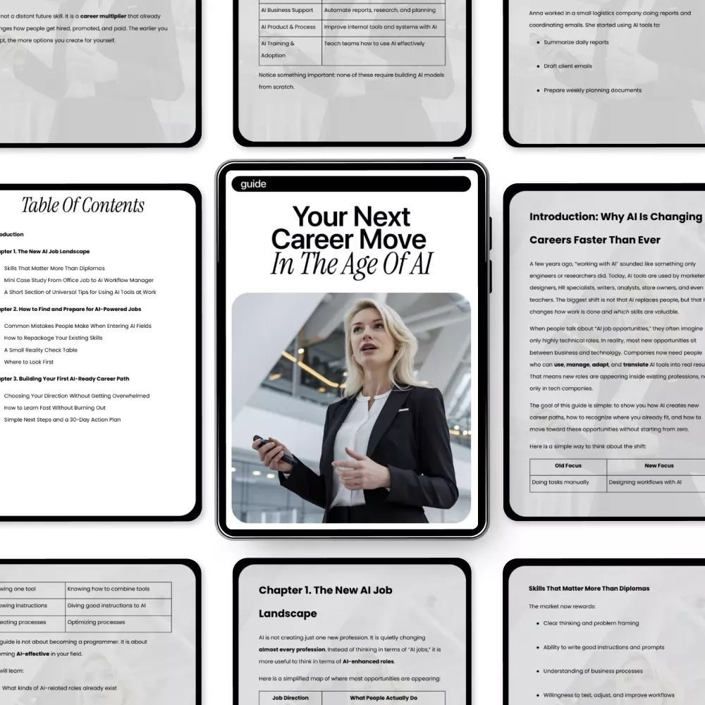 Unlike many AI career resources, this guide focuses on practical thinking, transferable skills, and realistic paths. It doesn’t promise shortcuts or overnight success. Instead, it shows you how real people adapt, where to start, and how to move forward with confidence and clarity.