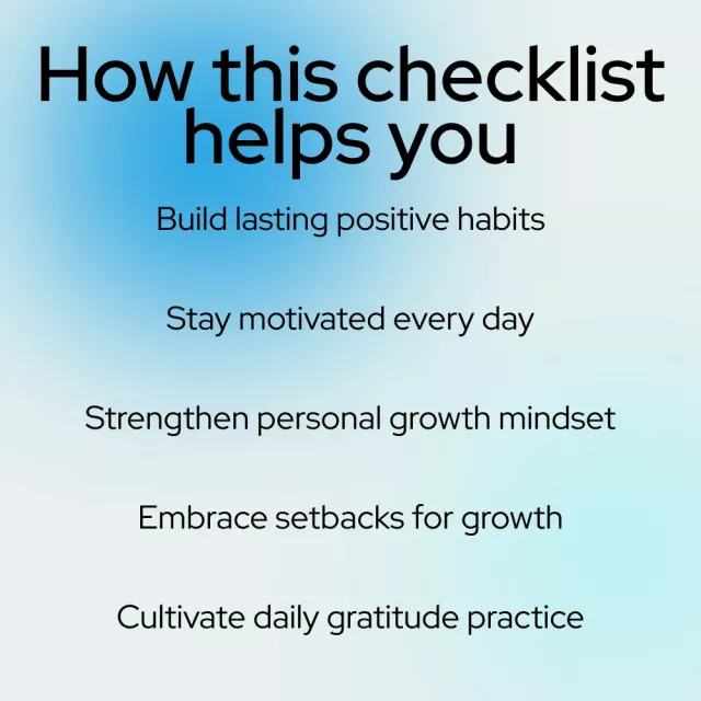 Love how this checklist is really easy to follow. I've been using it for a week and already feel more positive! The daily actions are simple but effective, they're helping me build new habits that stick