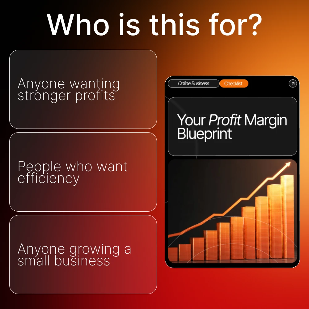 Download Your Profit Margin Blueprint today and start applying simple, powerful steps that show you exactly how to improve your business profit margin. Take control of your numbers, elevate your pricing, and unlock your most profitable version of business.