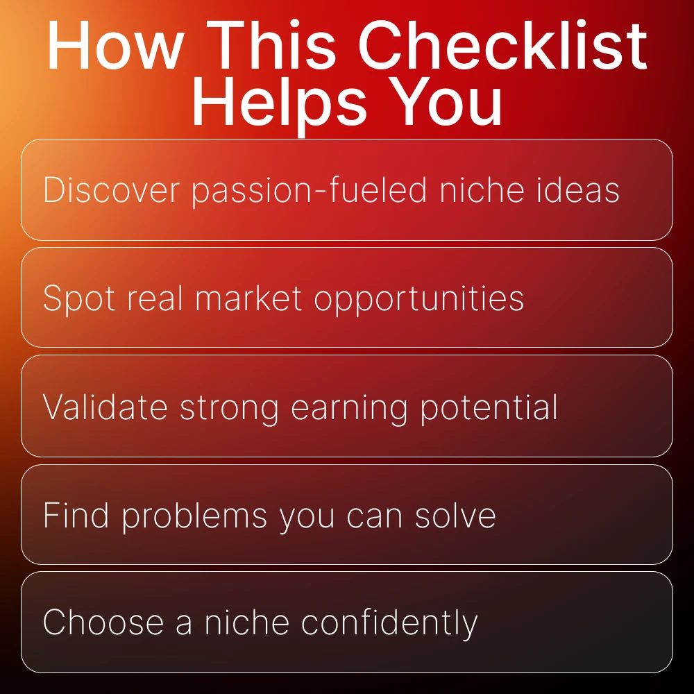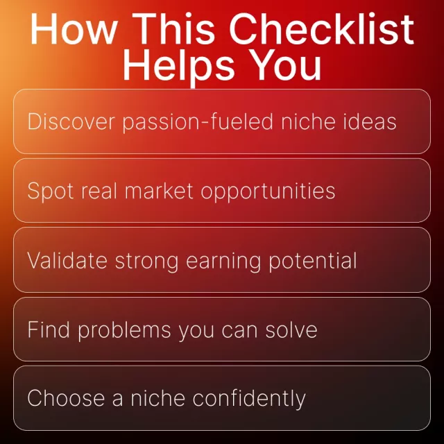 Unlike generic niche idea lists, this blueprint walks you through a proven decision-making process. It blends passion, market data, and revenue potential so you’re not guessing—you’re choosing strategically. It’s simple, actionable, and crafted specifically for creators who want a niche that feels aligned and profitable.
