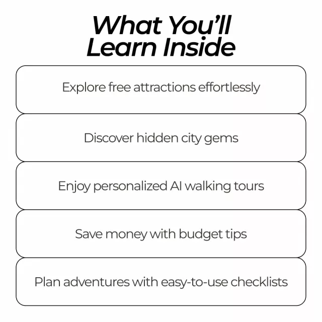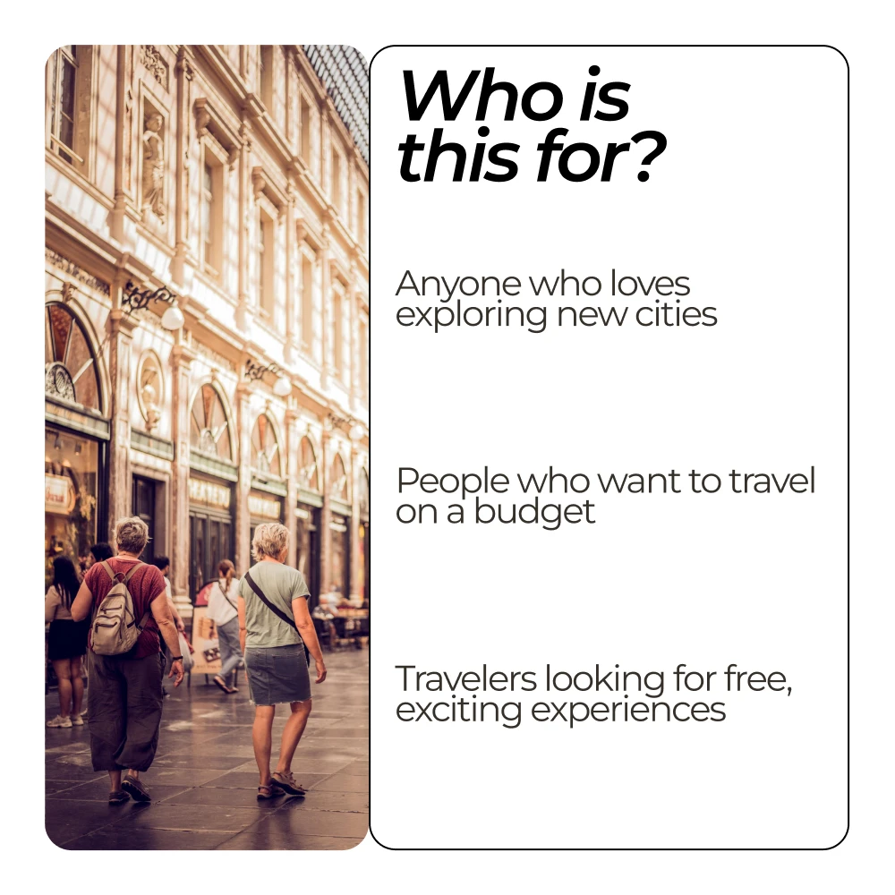 This digital bundle is perfect for anyone who loves to travel but wants to do so affordably. Whether you’re a student exploring a new city, a family looking for budget-friendly activities, or a solo adventurer searching for authentic experiences, this collection is made for you. If you’re eager to explore free things to do in any city, maximize your travel budget, and enjoy AI-powered tours, this is your ultimate guide.