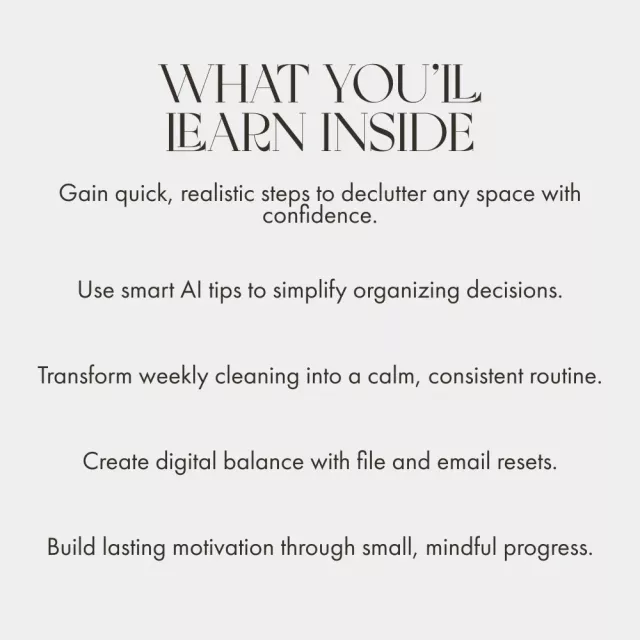 I was initially skeptical about how much a digital eBook could really help me declutter and organize my home. But this guide has proved me wrong. The step-by-step system is clear, the checklists are time-saving, and the AI-powered insights make everything so effortless. It's perfect for busy people like myself who need to maintain a tidy space without adding stress.
