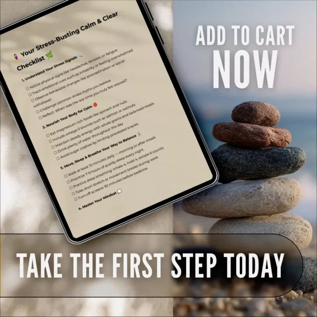 Feeling overwhelmed, wired, or just worn out? Your Stress-Busting Calm & Clear Checklist is your simple yet powerful guide to feeling better fast. Designed as a beautifully organized digital download, this checklist gives you real, research-backed health and stress reduction strategies that are easy to follow and fit into any lifestyle. Whether you’re working too much, juggling home life, or just trying to keep your cool in a chaotic world — this guide helps you press pause, reset your body and mind, and build lasting calm.