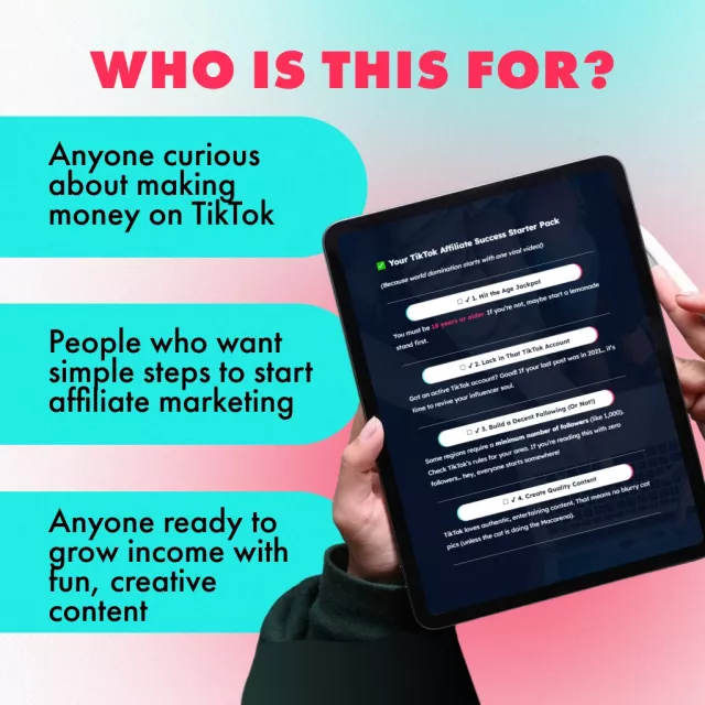 This starter pack is perfect for aspiring influencers, side hustlers, students, and anyone curious about TikTok affiliate marketing. It’s written in a lighthearted but practical style, so even total beginners can follow along with ease. Unlike lengthy eBooks or vague tutorials, this checklist is quick, actionable, and designed to help you start seeing results right away.