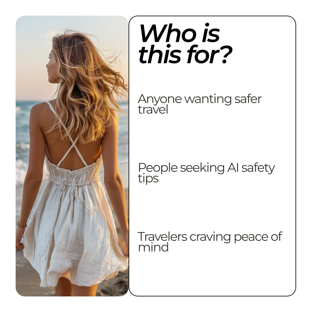 This bundle is perfect for travelers of all kinds—solo adventurers, families, digital nomads, and anyone who wants to explore the world without worry. If you’ve ever wondered how to feel safe in a foreign country tips, or simply want a smarter, AI-driven way to travel confidently, this system is made for you.