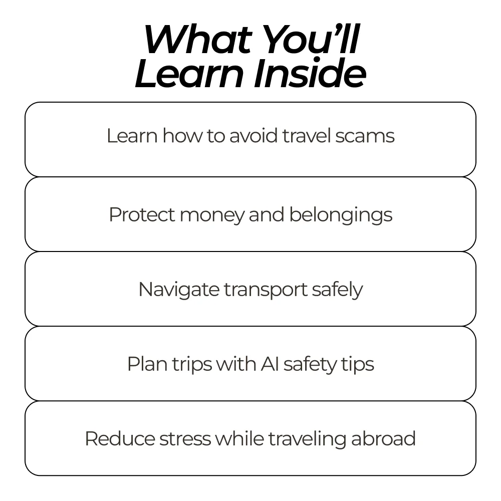 • Scam-Free Adventures: Your Travel Safety Checklist – Spot and avoid common travel scams effortlessly.