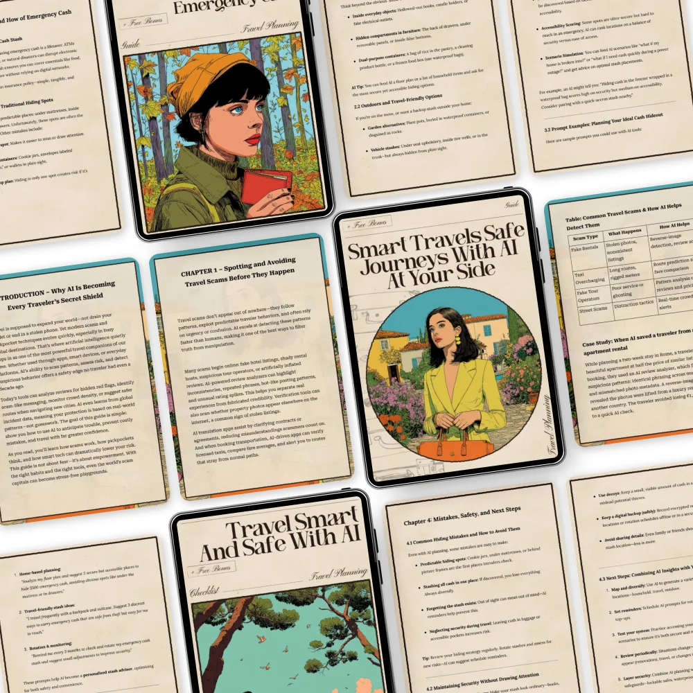Unlike other generic travel guides, this bundle combines actionable checklists, expert advice, and AI-powered tools. Every component is designed to give you a step-by-step approach to travel safety, money protection, and peace of mind—making it a truly comprehensive system for modern explorers.