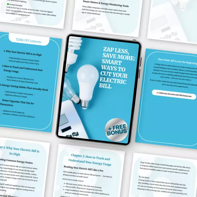 Don’t let your electric bill control you. Download “Zap Less, Save More: Smart Ways to Cut Your Electric Bill” today and start slashing your energy costs. With expert tips and a personalized plan, you’ll be on your way to saving more and wasting less in no time!